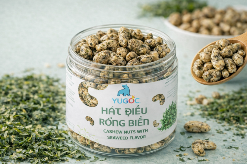 YUGOCの商品に「カシューナッツ・海苔」フレーバーが登場。潮の香り漂うカシューナッツは子供からお年寄りまでおいしくお召し上がりになれます。